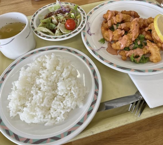 写真は限定メニューのエビフリッター定食で、人気すぎてすぐに売り切れてしまいます💦😭