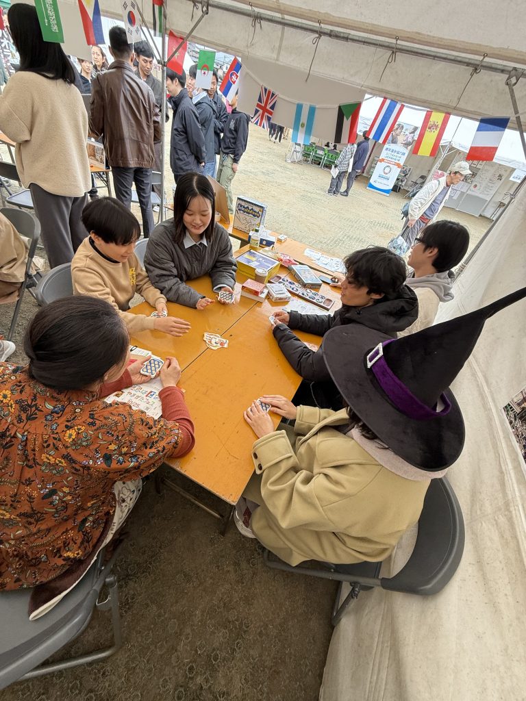 「やまがた留学アンバサダー」は、文化体験ブースとして「世界の遊び体験」を出展し、来場者と一緒にカードゲームやボードゲーム等を通して国際交流を楽しみました。