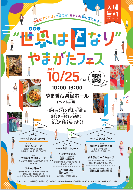 - 【10/25(土)】「「“世界はとなり”やまがたフェス~世界はすぐそば。出会えば、 ちがいは楽しさになる~」」を開催します! 2025年10月14日